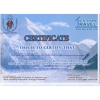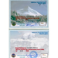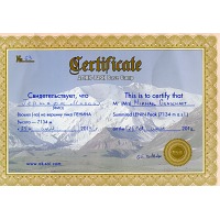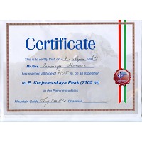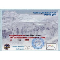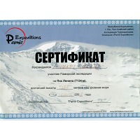 В данном конкретном случае от морального разрывания на клочки меня спасла любимая маечка. Ну очень мне флаг Киргизии нравится — золотое солнце на красном фоне. Кто-то из окружающих потыкал пальцем в обозначенную на маечке высоту (пик Ленина, 7 134 м), на том дискуссия и завершилась. А одел бы другую? Бейджиков не ношу, дипломы не таскаю, удостоверение инструктора настолько обветшало, что можно в музей сдавать. Решил выложить достижения здесь и посылать интересующихся ....... в интернет.